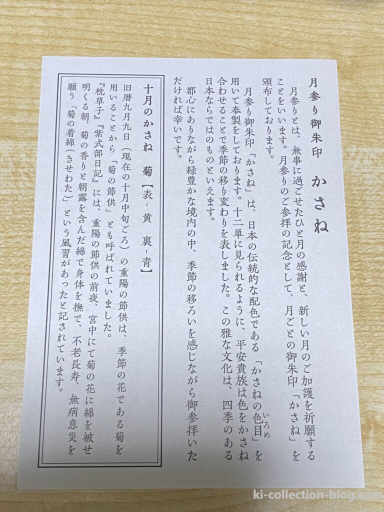 そのため、今回は10月の月参り御朱印「かさね」のみを受けましたので紹介いたします。